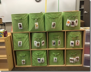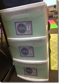 Here is how she organizes her community supplies for each table. We made the labels on FULL sheet labels. Then, we just cut them on a paper cutter! So much easier!