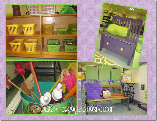 (doll house, listening, wipe off books, unit of study books, overhead projector)